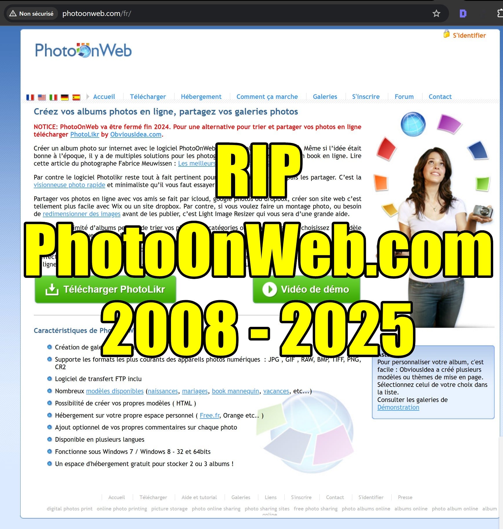Le PhotoOnWeb Le service et le serveur ont été coupés. Bien que la fin du service ait été annoncée il y a des années, l’arrêt final du serveur par OVH (qui a supprimé la prise en charge du serveur matériel en ligne depuis 2011) est imminent. Les utilisateurs qui se sont appuyés sur PhotoOnWeb comme seule sauvegarde photo doivent immédiatement utiliser FTP pour télécharger leurs photos ou nous contacter.