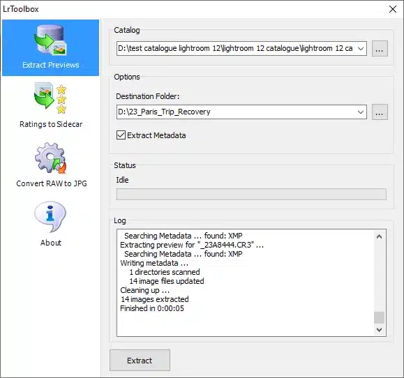 LrToolbox is a comprehensive Windows software designed to handle your Lightroom catalogs with ease. Whether you’re a professional photographer or a hobbyist, this tool will help you streamline your workflow and increase productivity. Whether you need to extract previews from catalogs, convert your photo ratings to sidecar files, or convert RAW photos to JPG, LrToolbox is here to help you in just a few clicks.